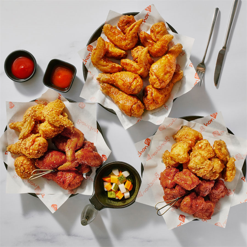 Bonchon được mệnh danh là “Cánh gà ngon nhất thế giới” có tới hơn 400 có sở. Bonchon lựa chọn nguyên liệu sạch sẽ, đảm bảo vệ sinh an toàn thực phẩm giúp thực khách có trải nghiệm tốt nhất về món gà rán Hà Nội ngon đúng điệu.