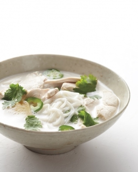21. Bún gà ăn với nước dùng chế biến từ dừa khô.