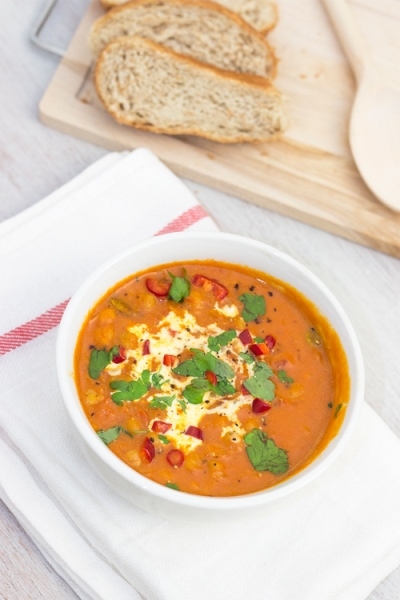 25. Những miếng dừa béo ngậy được rải trên chén súp bí thơm ngon.
