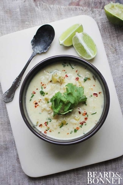 2. Súp dừa với các nguyên liệu từ rau củ có thể dùng như một món chay.