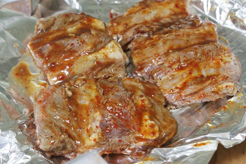 Bọc sườn vào giấy bạc để trong tủ lạnh qua đêm.