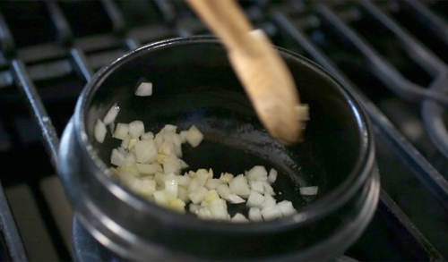 - Làm nóng một nồi đất sét (kiểu Hàn), trên bếp với lửa lớn khoảng 3-4 phút. Nếu dùng nồi thường, bạn chỉ cần làm nóng từ 1-2 phút.