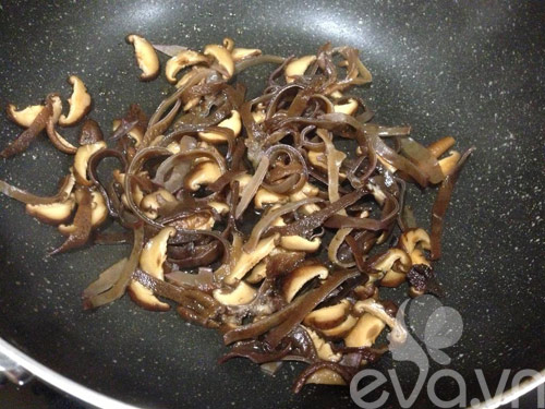 Cho lên chảo nóng, cho một chút dầu vừng và xào sơ riêng từng món, nêm nếm gia vị cho vừa miệng (mộc nhĩ nấm hương có thể xào chung).