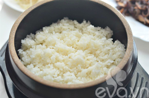 - 3 bát con cơm trắng, có thể nấu bằng gạo dẻo thường hay gạo Nhật
